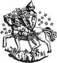 Герб Галицько-Волинської Русі - вершник-прапороносець тримає щит із зображенням лева. З друку Юрія Львовича. Поч. XIV ст.