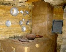Вздовж коридорів простягнулися так звані кухні, із виробленими у стінах печами. Над такими саморобними плитами висять дерев’яні полички із різноманітним кухонним приладдям: черпаками, мисками, склянками. Збереглись там навіть жорна, на яких мололи пшеницю для хліба.